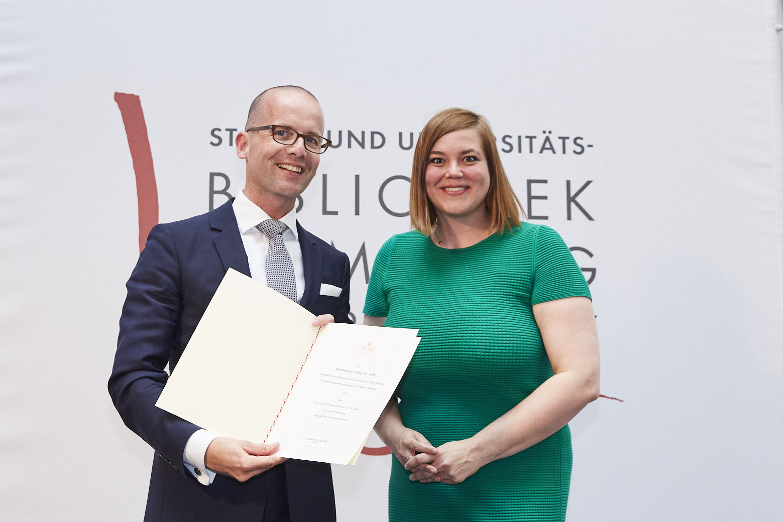 Bei der 10. Verleihung des Hamburger Lehrpreises ist Prof. Dr. Markus Kotzur für seine besonders innovativen Leistungen in der Lehre ausgezeichnet worden. Am 4. Juli bekam er bei einer feierlichen Zeremonie im Lichthof der Hamburger Staats- und universitätsbibliothek einen der begehrten und mit 10.000 Euro dotierten Preise von Wissenschaftssenatorin und 2. Bürgermeisterin Katharina Fegebank überreicht.