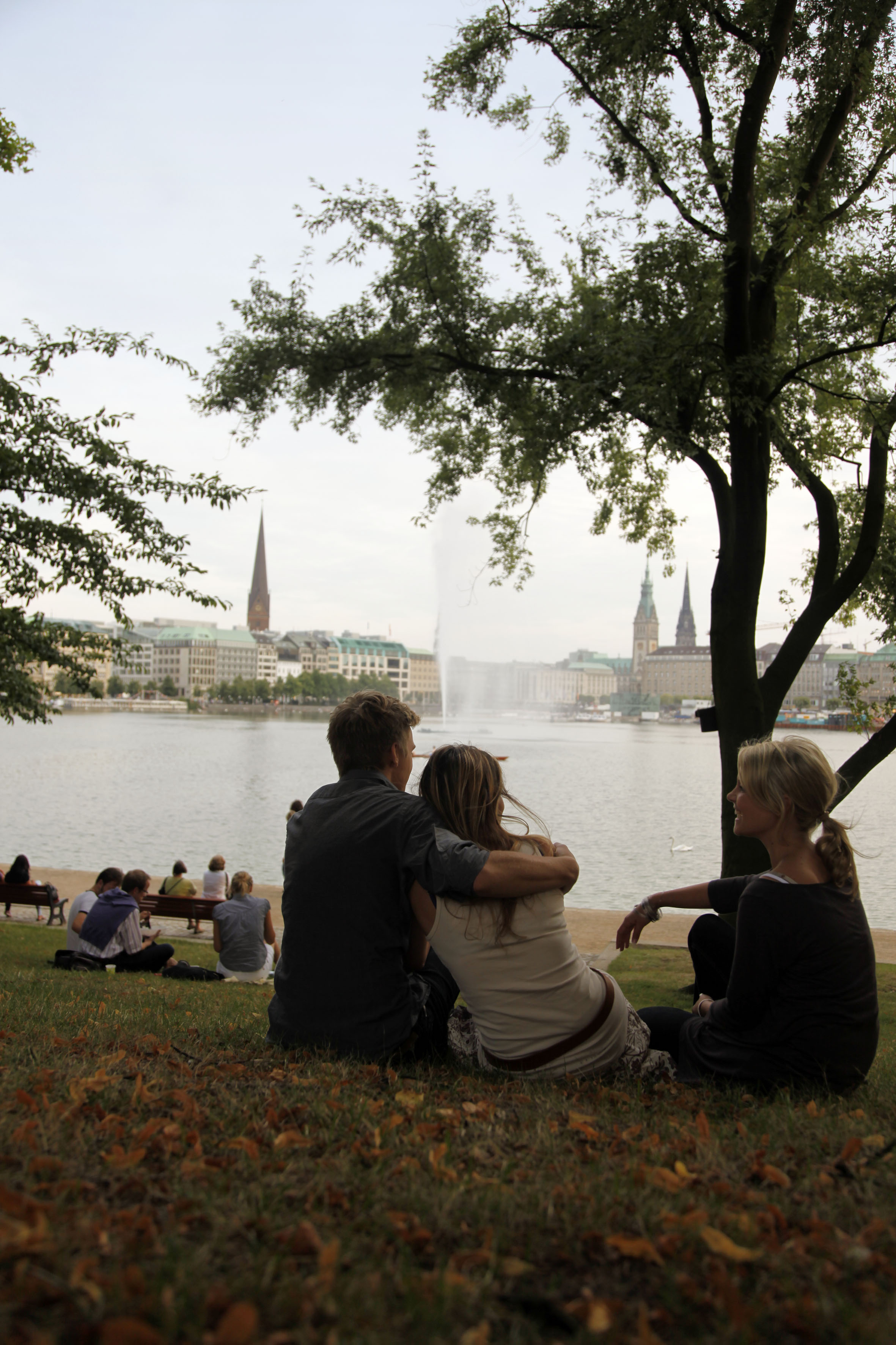 … nie weit weg vom Wasser. Im Herzen der Stadt liegt die Alster, eine Spielfläche für Segler und Schwäne. Zahlreiche Kanäle laden im Sommer zu Paddel- oder Alsterdampfer touren ein – und im Winter mit Glück zum Schlittschuhlaufen und Glühwein